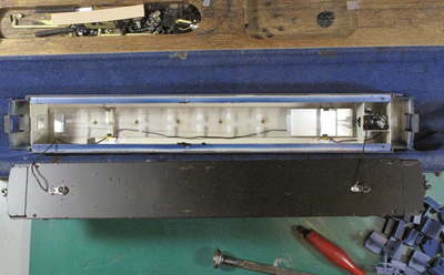 IMON151系は当初から先頭部にはスーパーキャパシタという心づもりだったのですが、スーパーキャパシタを使いながらちらつかない回路を作るのに大変なコストとボンネットいっぱいのスペースが必要になったのです。 スーパーキャパシタ・・・本体はこんなに小さいのに・・・