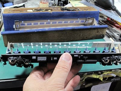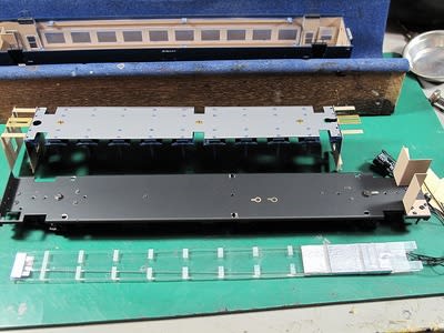 こういった状態の時の床下機器の透け方に拘っています。 実物同様の水タンクの釣り方など。