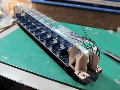 IMONの箱物車両のインテリアとパネルライトは下回り側についているのが通例で、それによって配線が暴れないようにしています。