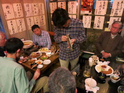 今日のお出掛け③は“加藤おやびんを囲む忘年会”です。 おやびんの発声で乾杯!!