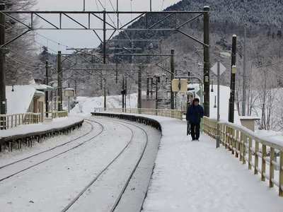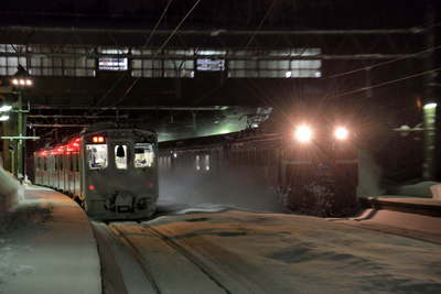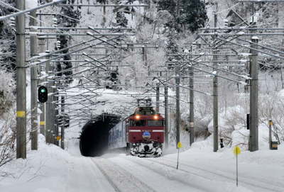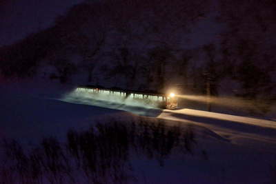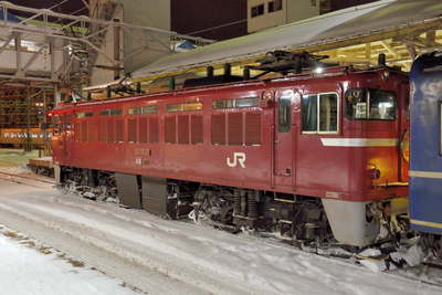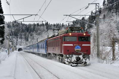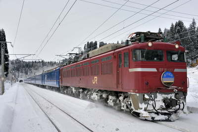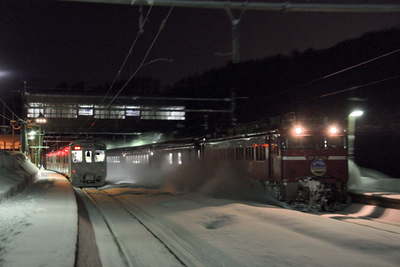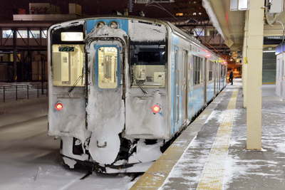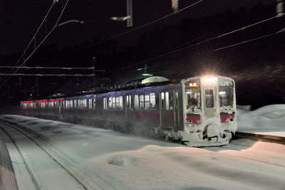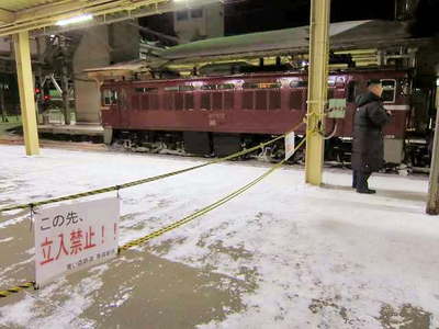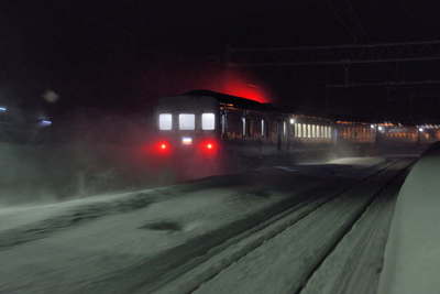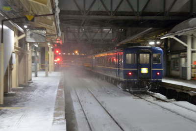 【あけぼの】が来ました。 雪が降り続いた状態なので非常に格好良いです。