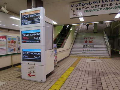 青い森鉄道 22:47 発八戸行き。 奥羽本線遅延列車接続のため〔はまなす〕ともども延発です。