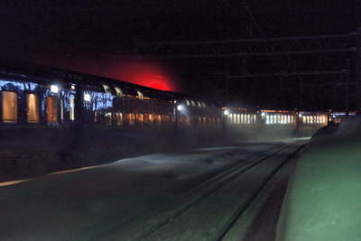 露出は同様ですが“たぬき”ならぬ「東十条」で見る【あけぼの】より車内灯が明るいです。