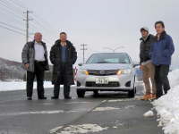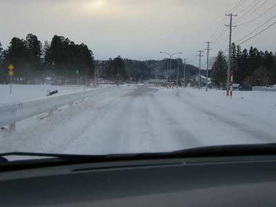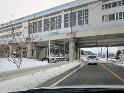 凍った路面の道路を線路沿いに新花巻へ向かいます。