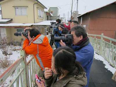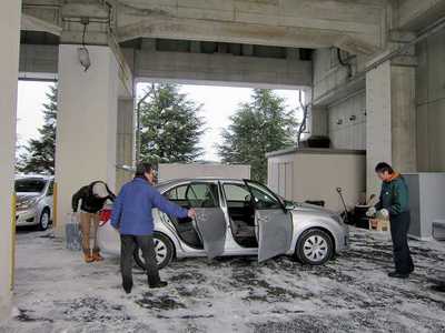 午前中と比べてフロントデッキの雪が減っています。