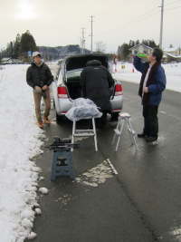 新花巻駅近く、道路が少し広くなった場所で荷物の整理(撮影臨戦態勢→移動用荷造り)を行い、(簡略に)脚立に載せて記撮もします。