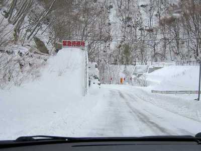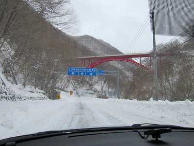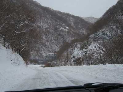 15:00 仙人峡道路を走ります。 まだ時折雪が降ってきます。