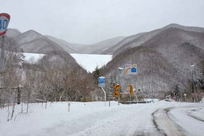 凍っているので慎重に峠を降りて行きます。