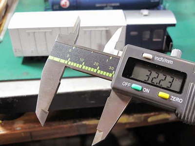 実はタキ43000の梯子部分での車体幅が37mmも有ります。 そこを逃げる様にするのです。