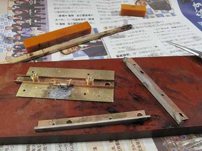 二分割した前梁ですが「平面」を出すようにしながらハンダ付けします。
