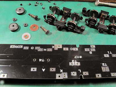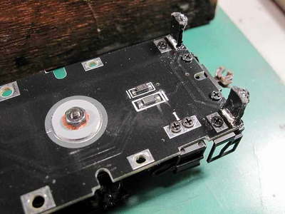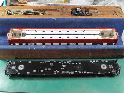 随分出来の悪い台車です。 だが、裏を見てびっくり!裏側は塗装されています。 集電はどうなるのでしょうか・・・・