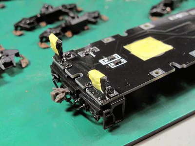 マスキングします。 台車に汚れを掛けます。