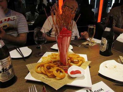 揚げ物盛り合わせ オニオン、ポテト、揚げスパゲッティです。