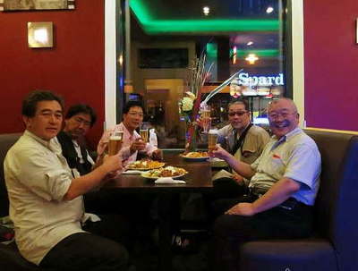 ところで待望の鉄研三田会の先輩方に会いました。 この店の外側の席でもう宴会が終わろうとしていました。