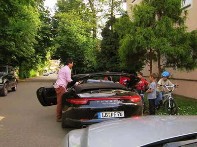 P;井門ランダウの先まで追い掛けてもう一発狙います。 子供に囲まれるポルシェです。