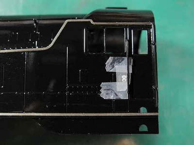 流線形カバーについては、デフの裏側、煙突回りと内側を染めました。