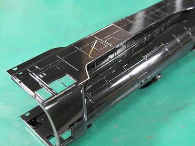 このC55流線形もこのままプレート貼り付け後、オーバーコートの半艶クリヤラッカーを吹きます。