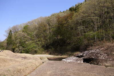 ふれあいランド高郷の近くにて。 雪が残る一方で新芽が出始めた木々。