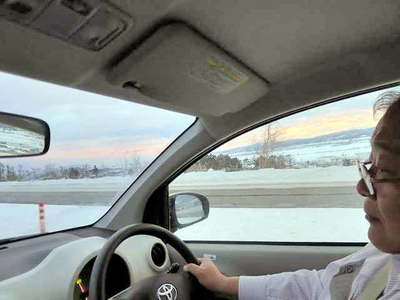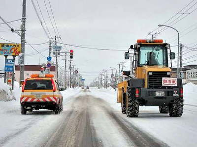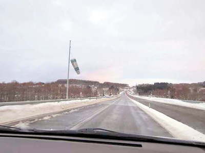 札幌へ向かいます。 除雪車に道を塞がれている状態です。