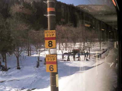 9:50 その4号車の窓から見た九頭竜川を渡る様子。