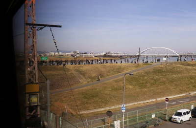 8:05 神通川鉄橋を渡ります。 左側高い所はまもなく開業となる北陸新幹線です。