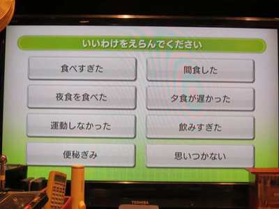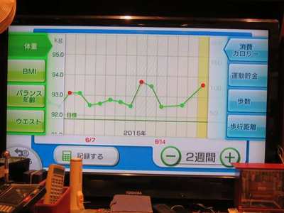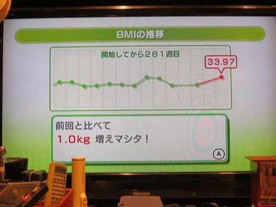 (「前日は暑くて汗をかいたから1.5kg減だったんだ!1.0㎏増えてどこが悪い!」なんて言う言い訳を入れておかないというのはWiiFITの作者が減量の経験が無い事をよく示しています)