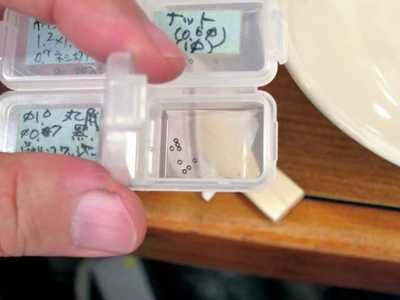 近藤さんが覗き込んでいるのは越後さんの自作パーツのケースです。