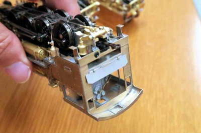 LP42付もLP403付もヘッドライトと煙室扉を一体ロストで作ってあり、点灯化する為の配線穴が通してあります。