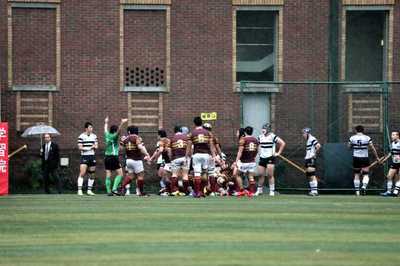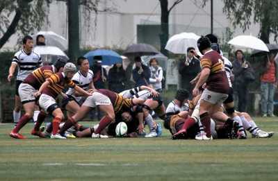 雨中の闘いなのでスクラムからは湯気が上がります。