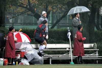 雨の学習院北グラウンドです。