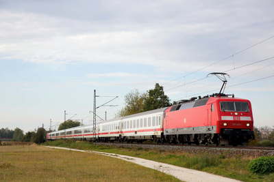 ミュンヘンからの大学生A君も参加、ほとんど撮り鉄は初心者だ。 松岡君のナビで最初のお立ち台、バイエルスドルフ~ケルスバッハ間の田園地帯でカメラを構えた。 昔からの電化区間で架線柱が古いらしい。 空は7割がた雲に覆われている。