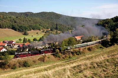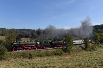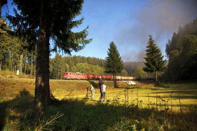 列車はSteinbach駅での40分間の給水停車ののち、旧国境駅Probstzella、最後の東独時代の01配置区Saalfeldを越えて終点Arnstadt駅へ向かいます。