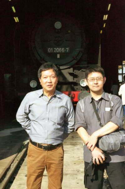 東ドイツ型の015は旧保存指定機だった 01 531 が扇形庫の端にいる。 煙室扉が尖った古いタイプだ。 この機関車はザールフェルドに末期までいて私の写真にも残っている。 長い間、静態だったが今年になって動態復活したらしい。 ドイツの蒸気機関車復活は日本より一枚上手だ。 突然、若い日本人から声をかけられた。「もしかして水沼先生ですか?」 彼は国立のがんセンターで私の部下だった先生のもとで研修中とのことだった。つまり孫弟子みたいなものだ。 井門さんのサイトも見てくれているそうだ。 ヨーロッパ内で何泊も夜行で過ごしていたというから筋金入りの鉄ちゃんだ。 松岡君らと早速情報交換している。 ここで昼食をと思ったが1時間程度しかなく、ロケハンしながら復路を先行することにした。