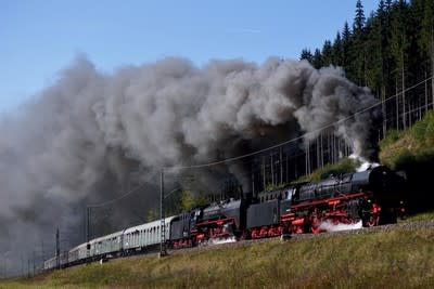 乗務員さんたちにとっても Arnstadt~Oberhof 間が一番のハイライトだったようです。 ネルトリンゲンに帰区した両機のボイラー上には、ブラストによってトンネルから剥げ落ちた煤の塊が積もっていました。