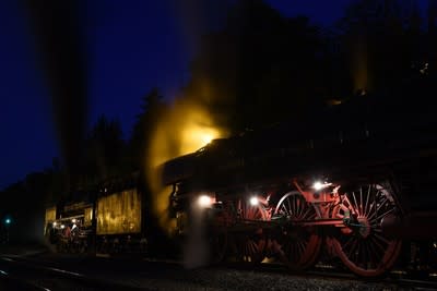 この旅が終われば海外へ来ることが困難になる私にとっては多分、生涯最後の01の発車の場面だ。 カメラを置いて最後は見るてつで脳裏に焼き付けることとした。 夜空に蒸気と煙があがる。 短笛2声、いつもの腹に響くようなブラストで列車は加速して行く。 どこかで拍手と歓声があがる。 私は立ち尽くしたまま01が視界から消えるまで見続けた。