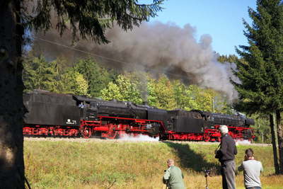 東ドイツ末期に石油危機があり、このザールフェルドに生き残ったSLが集結した。 原型01も東独型015も41,44,52といった貨物用機関車もいた。 ちょっと寄ってみたいが、次の撮影地まで時間がぎりぎりで断念させられた。