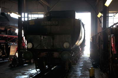 機関区の中の52型にも火が入っている。 点検しているのは数年前44型をデトレフさんと運転していた若い方のマックス君だ。 土曜日に52型を運転して専用線を走るそうだ。