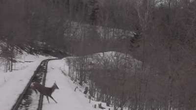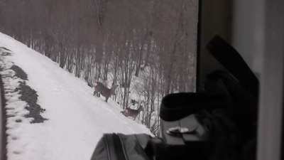 タイフォーン鳴らしながら鹿達の傍を走ります。