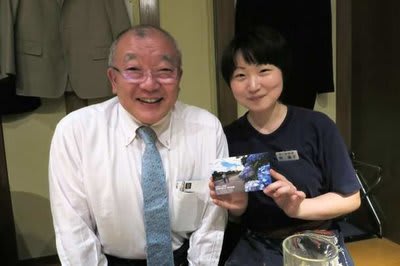直子さんが手に持っているのは都築雅人写真展のご案内はがきです。