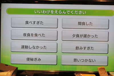 宴会の後の計量ではよく出る画面です。 「つまらん言い訳ばかり用意するな!」と言いたいです。