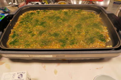 これは、宴会が終わって帰ったら我家は「もんじゃ焼き」の最中だったというものです。