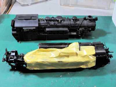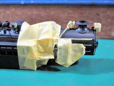 まずは煙室部分の艶消し塗装です。 筆塗+重ね吹付ではなく純粋にマスキングしての吹付塗り分けの挑戦します。