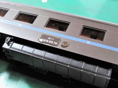 形式番号と所属の表記は転写しない事にしました。 折角綺麗に仕上がっている客車が台無しになりそうですのでIMONのインレタで何とかする事に致します。