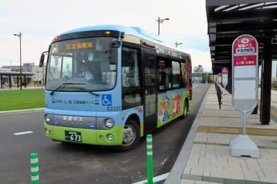 駅前に見えたバスは江差線に代わって運行されたバスそのものです。 発車!