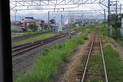 赤湯駅に接近、下り方からの接近になります。 左は山形からの標準軌線路。
