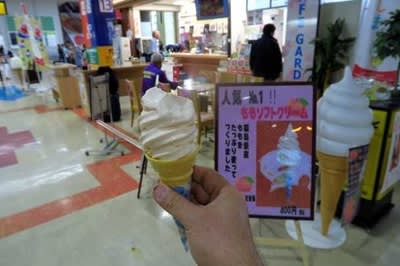 桃のソフトクリームから始まります。