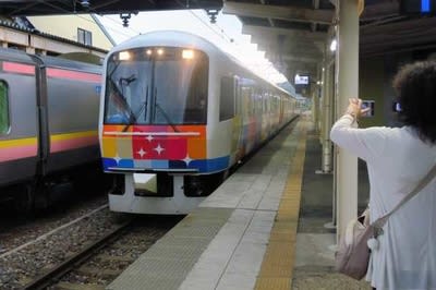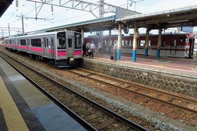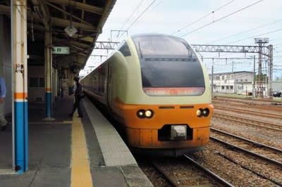 【いなほ】が去り、快速〔きらきらうえつ〕が入線してきました。