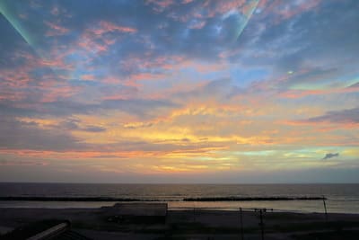 地平線近くになって太陽が雲間から現れました。