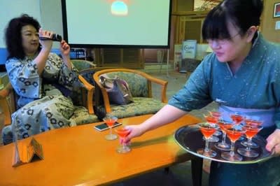 ロビー前でサービスの『夕映えカクテル』を頂きます。