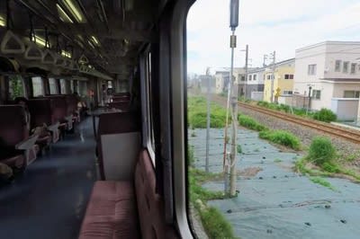 羽越本線と合流、余目駅に接近です。 列車はこのまま羽越本線を酒田まで走ります。